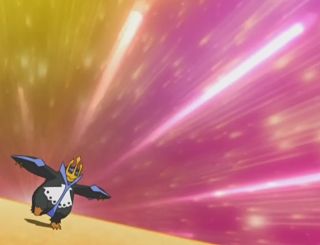 In its next appearance, Empoleon is found battling a Mothim. In this battle, it uses Hydro Cannon: