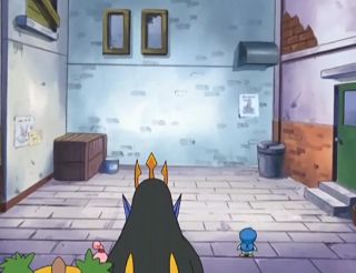 After an explosion caused by the collided attacks, Empoleon finds itself with Dawn's Piplup, Ash's Grotle and Brock's Happiny. Piplup, right after landing, goes in a direction which he feels is the right one. Once he gets mad at others for not following him, the others reluctantly accept his leadership: