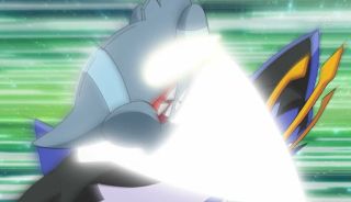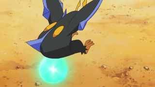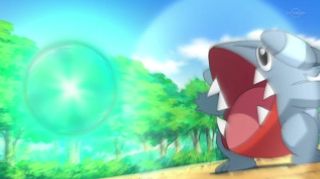 So much power that it blasts off Gible, showcasing his prowess, but still apparent lack of control: