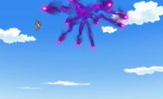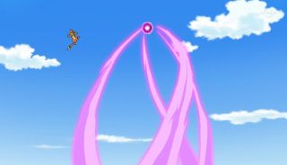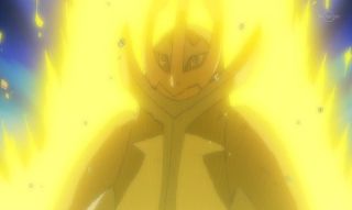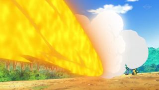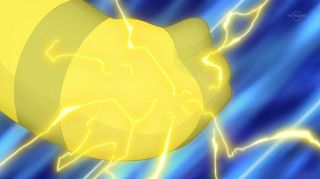 But with Ash telling him to hang on, Pikachu regains control. Ash, knowing Hyper Beam can't be used consecutively, uses this small window of opportunity to command Thunderbolt: