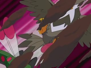 Another issue seen with Staraptor is Barry's lack of desire to have actual role in the battle. Instead of giving actual commands for Staraptor, he actually screams to Staraptor to do something against Ash's Chimchar's Flamethrower as he is incredibly clueless about the “silly”(or so he believes) concepts of dodging and countering. To give credit to Staraptor, he seems to know exactly what to do against Chimchar, as he very quickly managed to dodge Chimchar's Flamethrower;