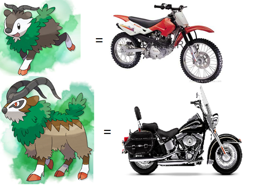 And most knowledgable Pokémon Fans know that the Skiddo and Gogoat are based off motorcycles: